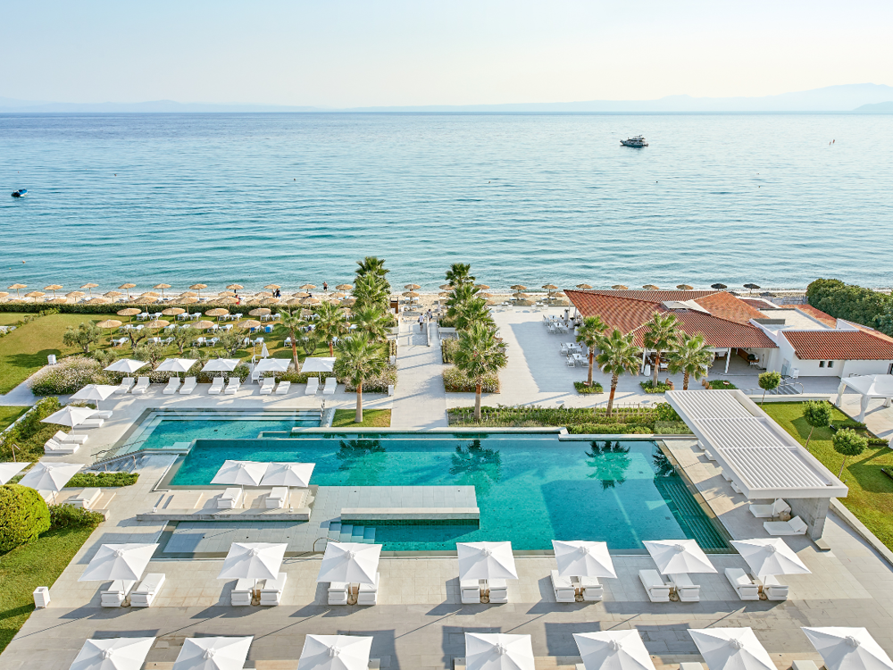 The resort is located near many vibrant beach bars, incredible beaches and the bustling nightclub scene of Halkidiki. The resort boasts two signature restaurants, and a signature sushi and cocktail bar, to cater to all dining needs. Additionally, there is a swimming pool on the premises for guests to enjoy, fully equipped with premium sun loungers and umbrellas, and beach bar service by the pool and on the beach.