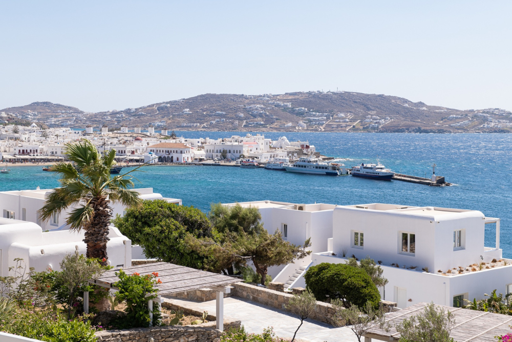 Porto Mykonos boasts an ideal location in Mykonos town overlooking the vivid pace of the Port and the sparkling colours of the sea. Nestled in romantic landscapes this seaside retreat offers the most magical Mykonos town view with flickering lights illuminating the windmills and the historic centre. The minimalist rooms and suites feature a combination of authentic Cycladic and modern elements.