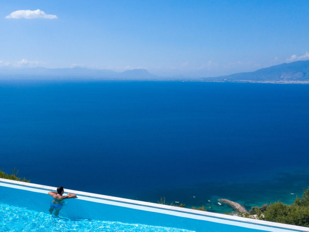 Villa Private Pool & Sea View sleeps up to 4 persons featuring two comfortable bedrooms and one or two bathrooms. The rooms consists of two double beds or one double and two single beds making them excellent choice for families, couples or friends travelling together. There is also a fully equipped kitchen with sleek wooden cabinets, living area as well as an indoor and outdoor dining area overlooking a private pool. free WiFi, hairdryer, iron and ironing board, air conditioning or ceiling fans, bath amenities, safety deposit box, satellite flat screen TV, pool shower, pool towels, slippers, private parking and a private balcony or terrace with sea views.