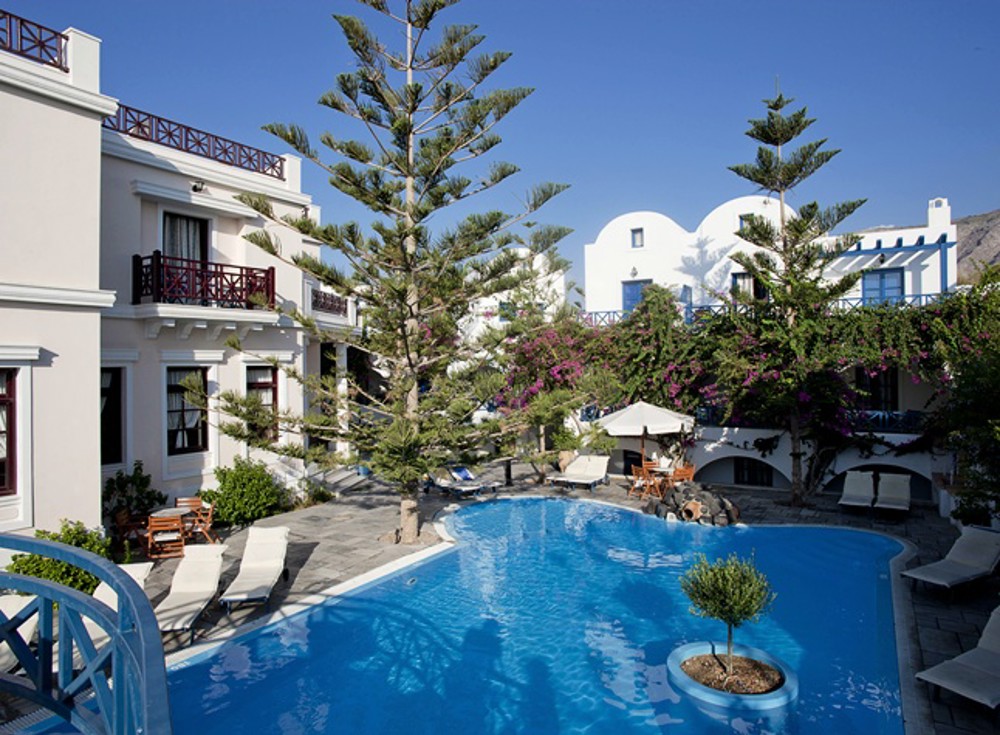 Perfectly placed on Santorini’s exquisite black sandy beach, the Veggera Hotel, in the cosmopolitan resort of Perissa, is a simply gorgeous Greek island holiday destination.