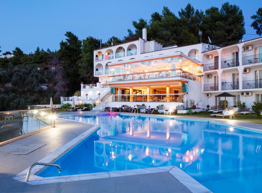 Beauty inside and out is the promise of the Punta Hotel, nestled amid olive groves and pine trees with panoramic views over the Gulf of Skiathos. Combining luxurious accommodation with warm hospitality and high standards of service, even the views from the superb restaurant bring a sense of alfresco dining indoors. There’s a pool, private beach and entertainment and, despite its tranquillity, the hotel is only two kilometres from the bustle and thriving nightlife of Skiathos town.