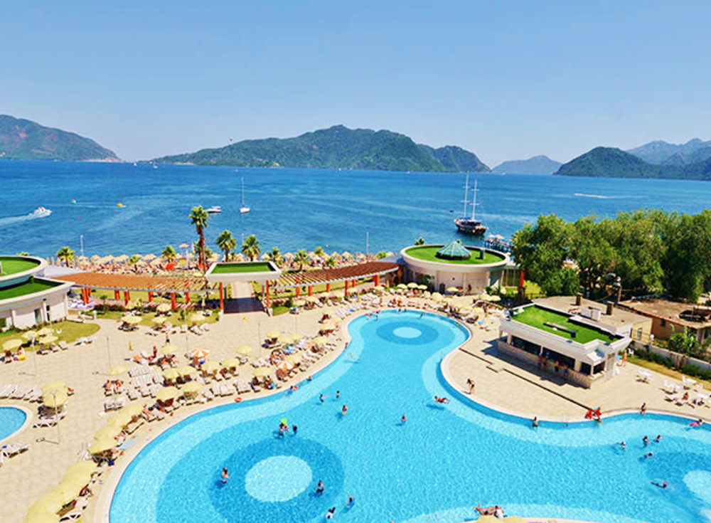 Housing two pools and waterslides to keep everyone entertained, there is plenty more on offer to keep guests smiling. Ideal for couples or families, a holiday at the Marmaris hotel provides sunny days by the Aegean Sea, sunbathing on loungers, or going for a swim.